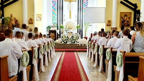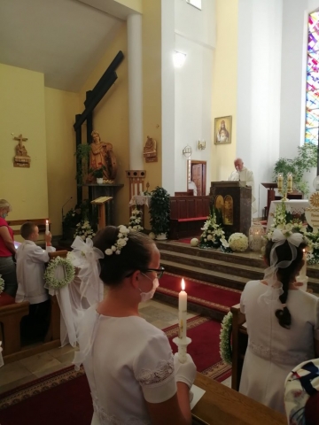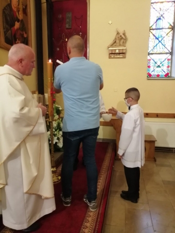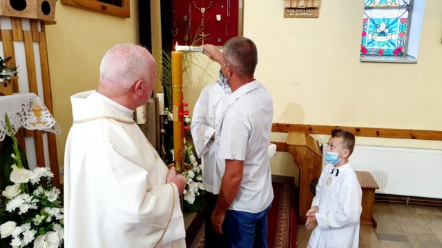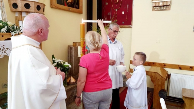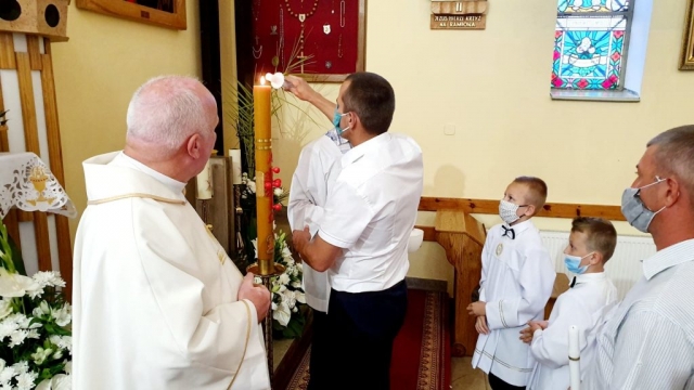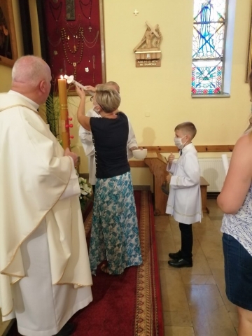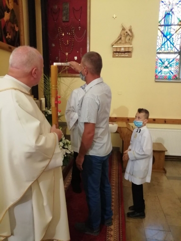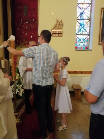 W kolejnym dniu Białego Tygodnia dzieci przeżywały wspomnienie swojego Chrztu Świętego. W trakcie Mszy św. osobiście odnowiły przyrzeczenia chrzcielne. Wszytko to odbyło się przy zapalonych świecach chrzcielnych. Zapalone od Paschału świece przekazali swoim dzieciom rodzice. Życzymy, aby w sercach dzieci i rodziców ten ogień wiary płonął ciągle.