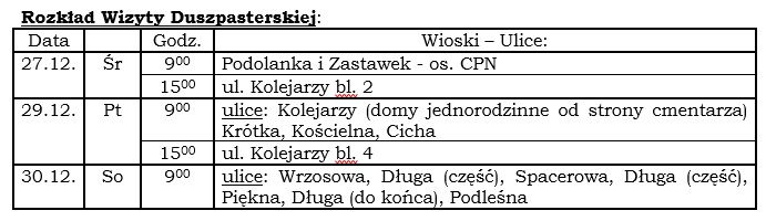 Od środy – rozpocznę wizytę duszpasterską, tzw. KOLĘDĘ w naszej parafii.